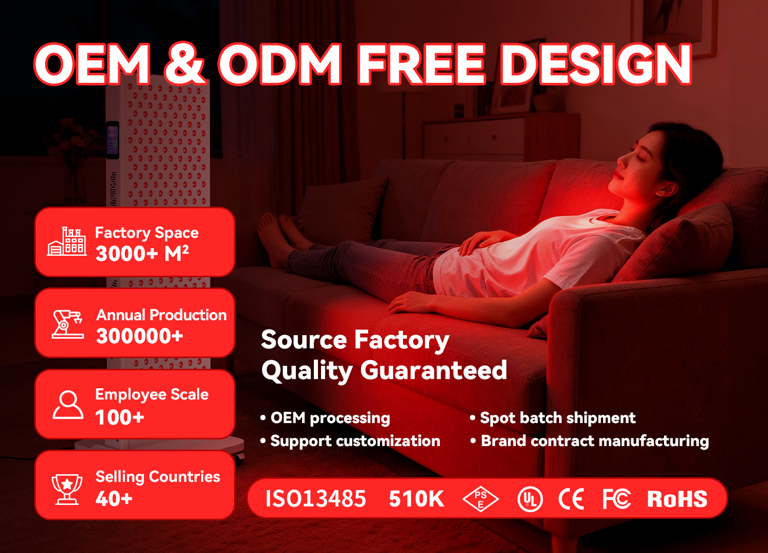 - High-Power Dual-Wavelength Array: Equipped with 320 × 5W LED lamps, delivering a potent combination of 660nm red light and 850nm near-infrared light. This dual-wavelength configuration ensures deep tissue penetration (up to 5cm) and maximum therapeutic efficacy.