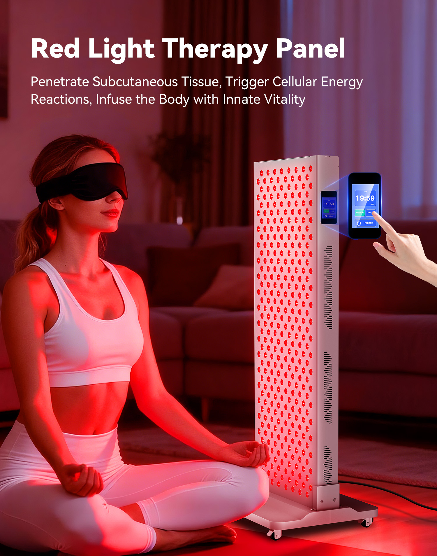 - Mitochondrial Activation: The panel emits 660nm red light and 850nm near-infrared light, which are absorbed by cytochrome c oxidase (CCO) in mitochondria. This triggers a cascade of biological reactions that boost ATP production—the cell’s primary energy source—enhancing cellular metabolism and function.