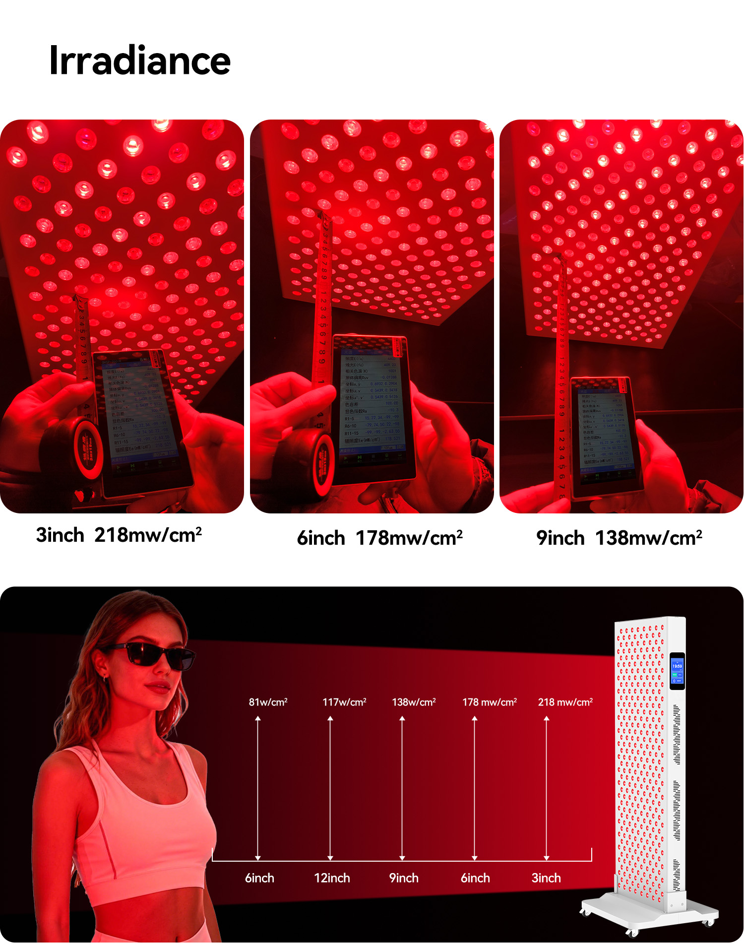 - Unmatched Irradiance: With a total power output of 400W and irradiance of 260mW/cm², the panel provides clinical-grade light intensity, delivering results in as little as 10–15 minutes per session.